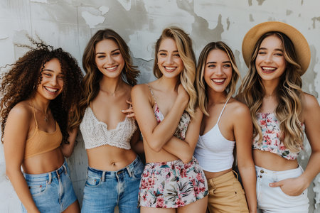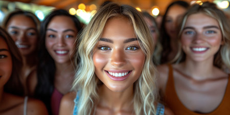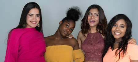 Portrait of a group of beautiful young women smiling and looking at camera.