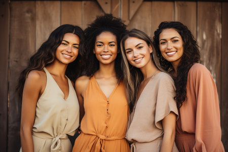 A diverse group of women stand side by side, showcasing unity and strength.
