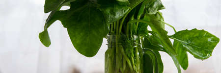 Freshly spinach in the glass cup, Agricultural industry food concept, healthy fresh eating background