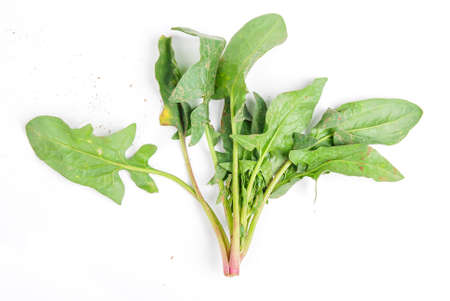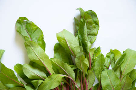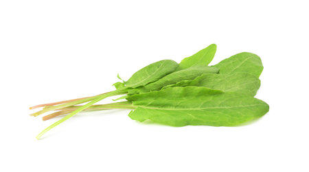 leaves of green and ripe garden sorrel on white background