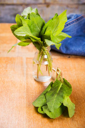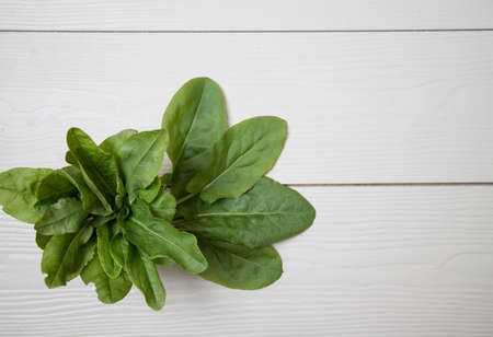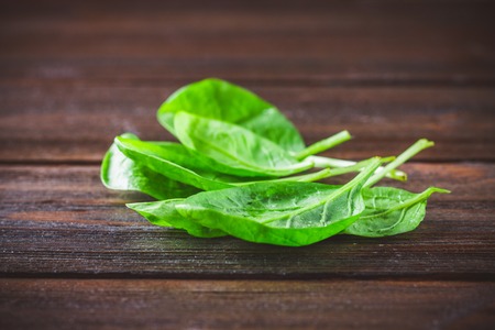 Fresh sorrel on a wooden table. food vegetable