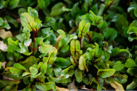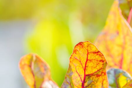 Close up to detail of swiss chard leaf in vegetable garden. Selective focus.