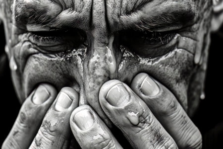 Witness the raw emotions as a man sheds desperate tears, overwhelmed by heart-wrenching sorrow
