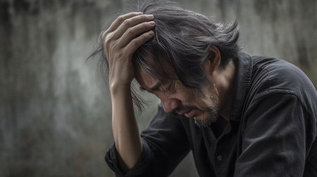 depressed and stressed asian man in depression and anxiety feeling desperate and worried suffering depression problem and anxiety crisis in mental health concept