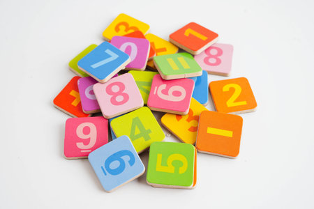 colorful plastic number on white background - math time