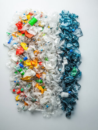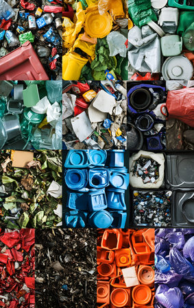 A vibrant collage of various plastic waste materials, showcasing the importance of recycling and environmental awareness.