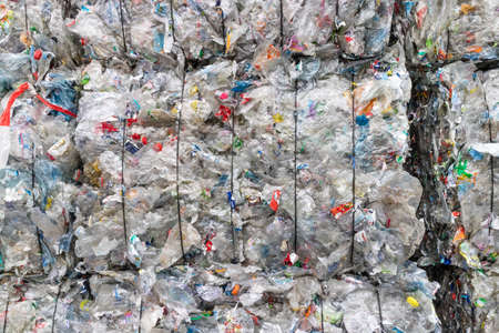 Bags with recycled plastic at a waste sorting plant. Separate garbage collection and sorting. Recycling