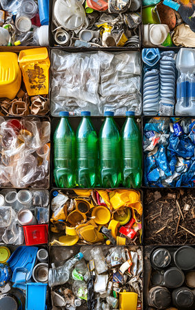 An organized display of various recycled plastic materials showcasing the importance of waste management and environmental awareness.