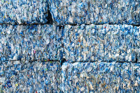 Huge Pile of Pressed PET Bottles Ready For Recycling Process. Urban Waste Management Theme.