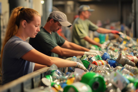 Workers efficiently sort recyclables in a bustling industrial facility promoting sustainability.