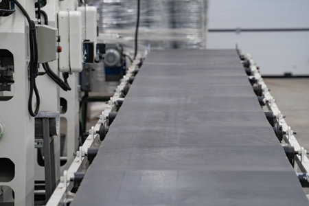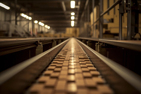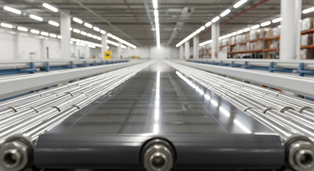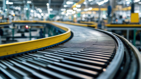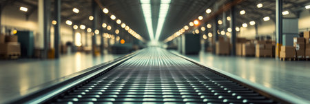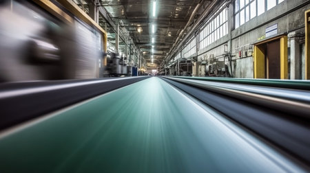 Clean conveyor belt in a high-tech factory, showcasing the efficiency of modern production lines.