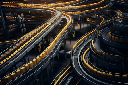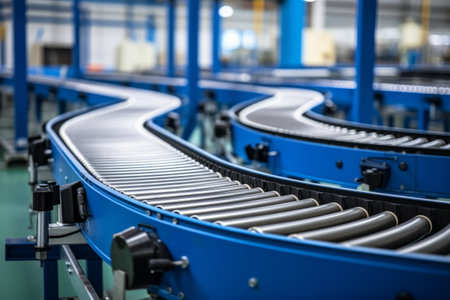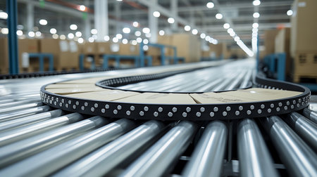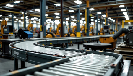 An efficient industrial conveyor system in manufacturing facility, showcasing advanced technology and streamlined operations