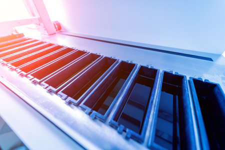 Production line of the factory for the manufacture of household appliances. Industrial background