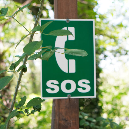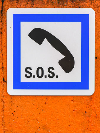 Information sign for help SOS. Sign of the alarm and call the firefighters, police and other services.