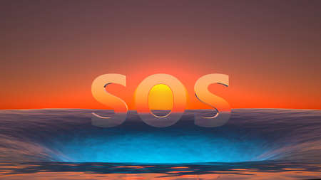 A computer monitor displays the SOS message in bright letters, symbolizing an urgent call for help. The dark backdrop emphasizes the seriousness of the alert.