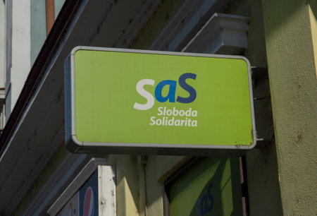 Nitra, Slovakia - November, 13, 2022 : SaS sign. Freedom and Solidarity (Slovak: Sloboda a solidarita, SaS) is a liberal political party in Slovakia.