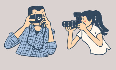 Illustration of people taking photos with a camera. Vector illustration.
