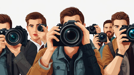 Photographers with cameras in different poses