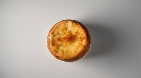 Egg tart on white background, top view, copy space.