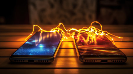 Reflection of light effects on mobile phone at a concert (Gadgets, new device, updates - concept)