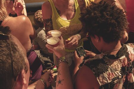 CLUJ-NAPOCA, ROMANIA - AUGUST 6, 2016: People taking photos with smart phones at a Dj Twoloud live concert at Untold festival