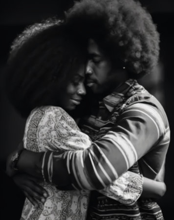 Vintage image of two lovers hugging each other. African American family