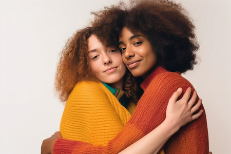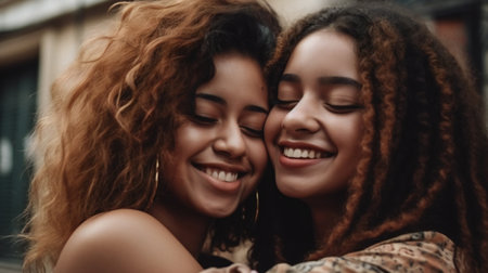 Portrait of an African American lesbian couple hugging each other. Generative AI. High quality illustration
