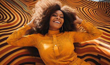 Radiant black woman with a joyful expression set against a vivid