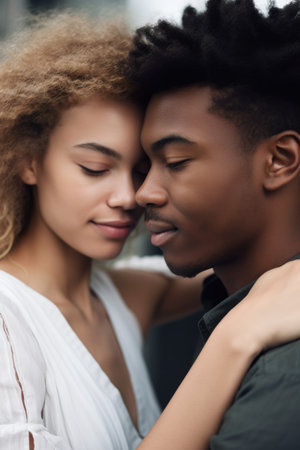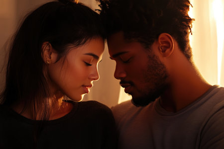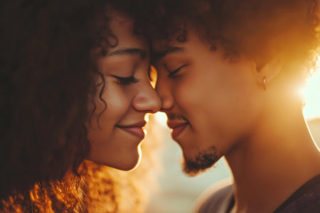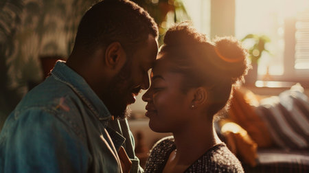 Tender Moment of Affection Between a Loving African American Couple in Warm Sunlight