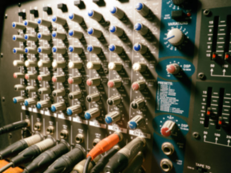 Blur image of Sound system control panel and sound mixer control for background. vintage tone
