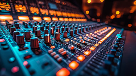 An audio mixer with its knobs and sliders meticulously adjusted, embodying precision and control in the art of sound engineering and music production