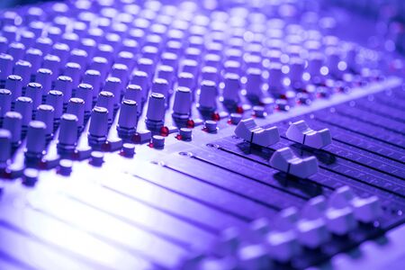 Sound Mixer Control. Professional Audio mixing console with faders and adjusting knobs. Equipment sound acoustic musical mixing&engineering concept