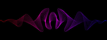 Abstract fluent gradient wavy lines of the sound wave. Dynamic pulsating wave. Musical neon concept, symbols of the frequency of digital music. Vector illustration on a black background