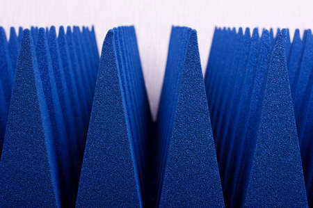 Pyramids of soundproof foam rubber, close-up. Sound-scattering material.