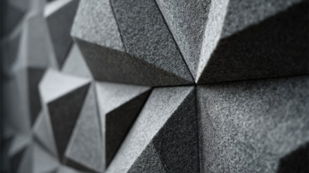 Close-up texture shot of grey acoustic panels arranged in abstract geometric design, modern architectural office detail