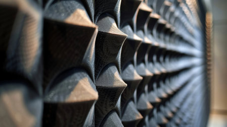 Abstract background in the form of pyramids and dragon scales. Acoustic black foam rubber.
