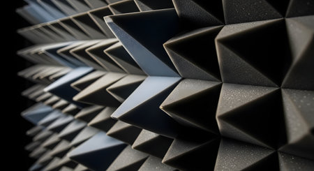Soundproofing foam panels with geometric pattern, ideal for echo reduction and acoustic treatment. Generative AI