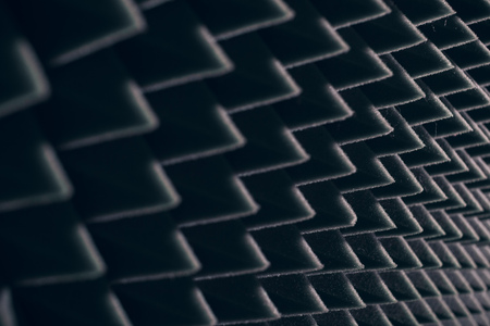 Close-up of black acoustic pyramid foam for soundproofing and studio