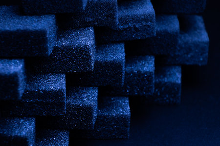 Cropped view of a soundproof wall in sound studio, background of sound absorbing sponge in recording studio