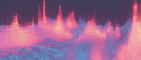 Dynamic 3D sound waves create an abstract background of vibrant energy and fiery heat