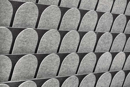 Close-up texture shot of grey acoustic panels arranged in abstract geometric design, modern architectural office detail