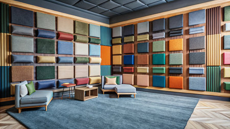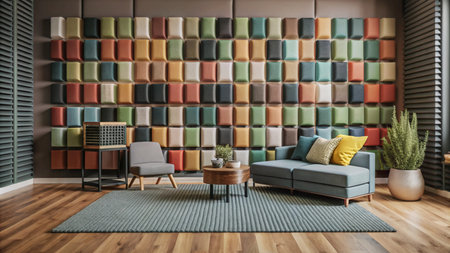 Soundproofing foam panels with geometric pattern, ideal for echo reduction and acoustic treatment. Generative AI