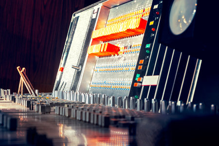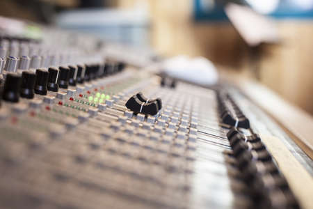 Analogue sound mixing table. Foreground and background out of focus, focus in the middle of the shot