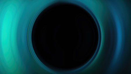 Neon frame. Blur glow. Portal hole. Defocused cyan green blue color gradient round circle with black copy space abstract illustration background.