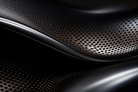 A detailed close-up shot of a textured surface featuring circular holes, accentuated by dramatic lighting, evoking a modern and abstract aesthetic suitable for various design projects.