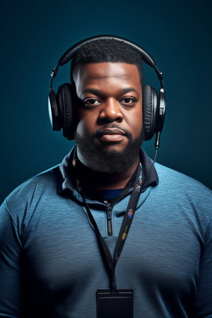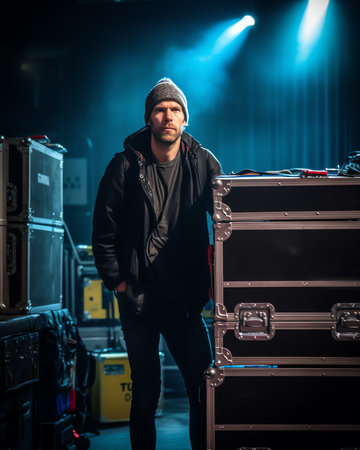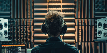 Dynamic sound engineer portrayal workplace focus rich color contrast