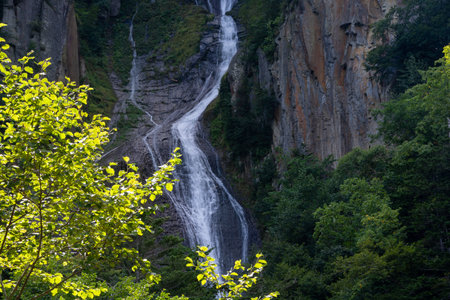 The green poetry that flows down, the natural picture of the waterfall in the mountains