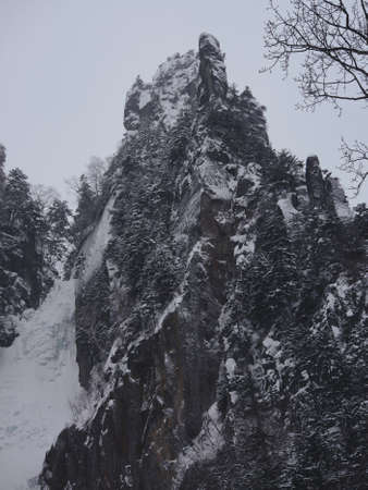 Sounkyo, Japan at Obako canyon. (sign reads: Daisetsuzan National Park, Obako)