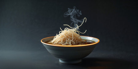 AI Generated. Steaming Bowl Of Noodles In A Dark Setting