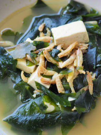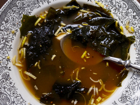 Seaweed soup with tuna. Healthy food. Soup food